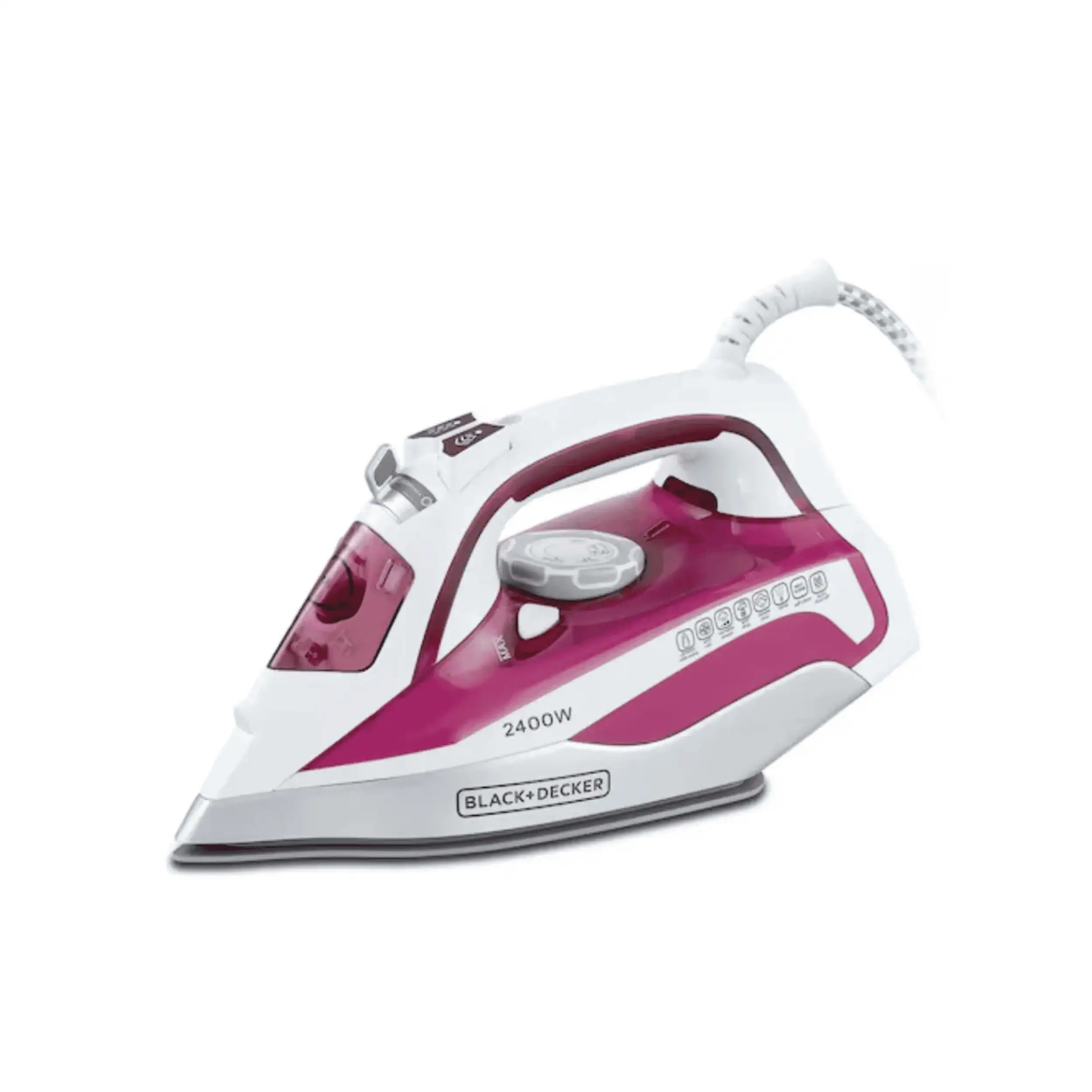 The Black & Decker Steam Iron X2400-B5 features a powerful 2400W heating system and a ceramic soleplate for smooth and efficient ironing performance. Designed to remove wrinkles, creases, and stubborn folds from a wide range of fabrics, this steam iron delivers fast heat-up and reliable steam distribution for superior results. The ceramic soleplate glides effortlessly across garments, reducing friction and protecting delicate fibers. Adjustable steam and temperature controls allow you to customize each press for optimal fabric care.