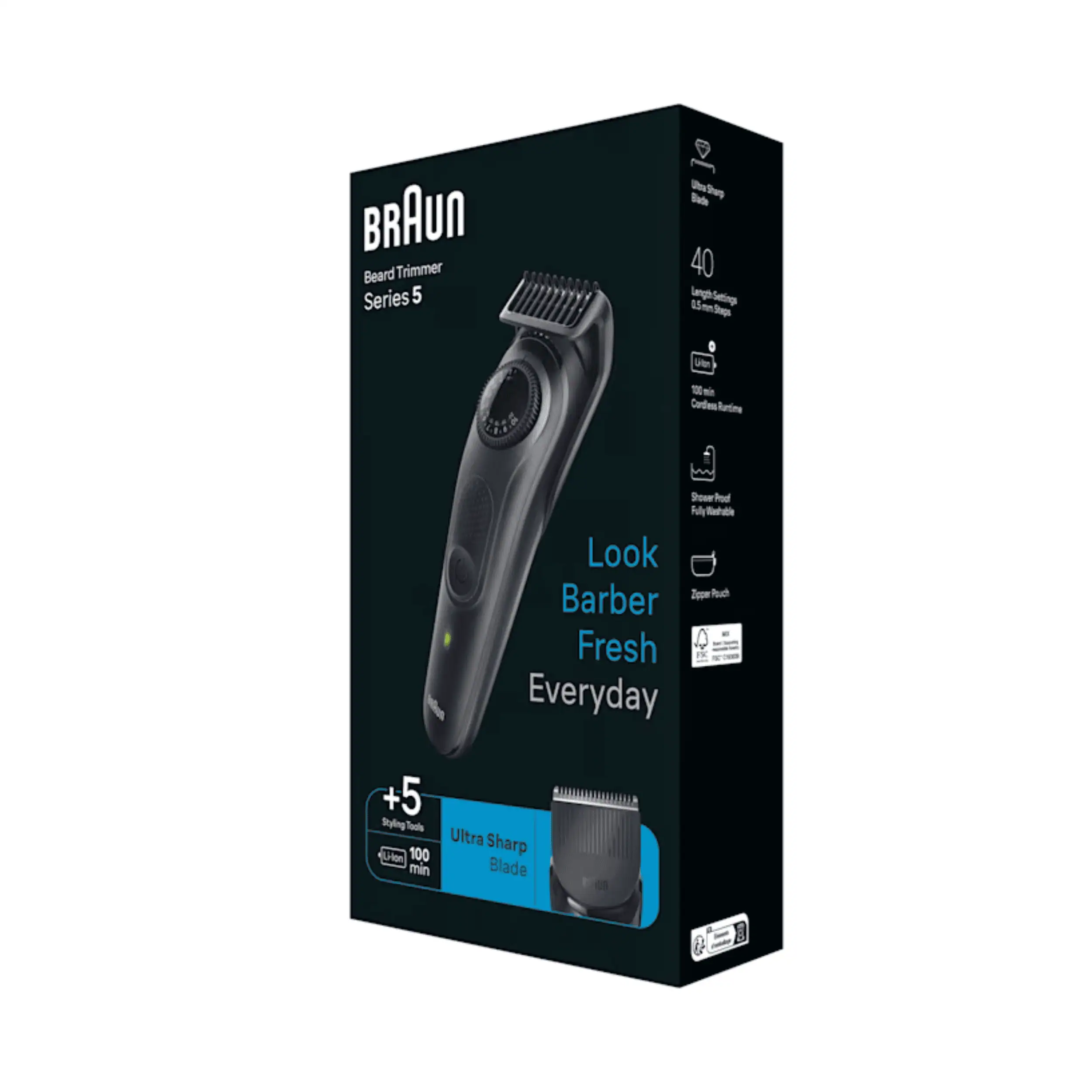 The Braun Beard Trimmer 5 BT5420 is a versatile grooming tool designed for precise beard styling and everyday personal care. Featuring a precision wheel and 5 styling tools, it gives you full control to create the exact beard look you want—whether it’s stubble, short beard, or defined edges.