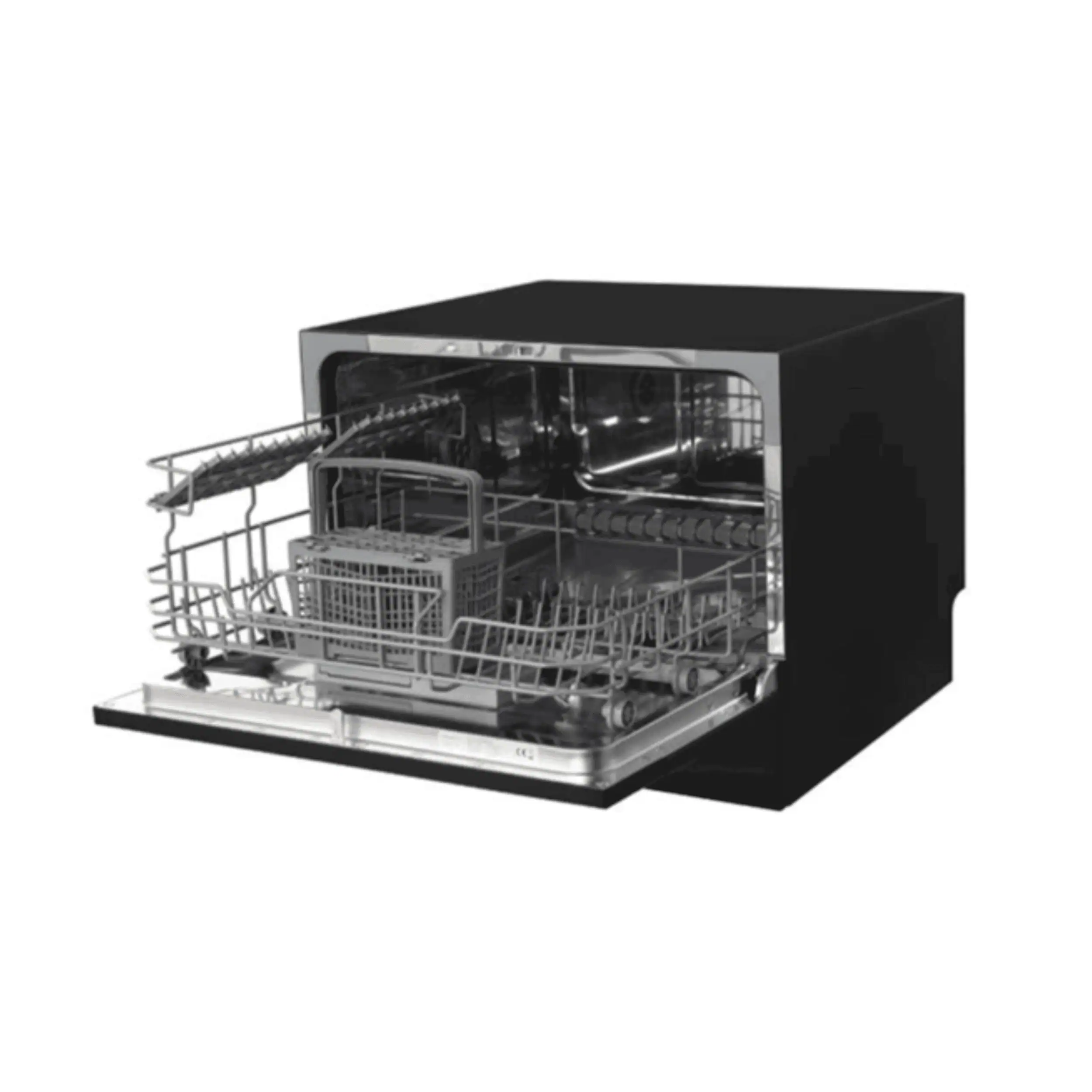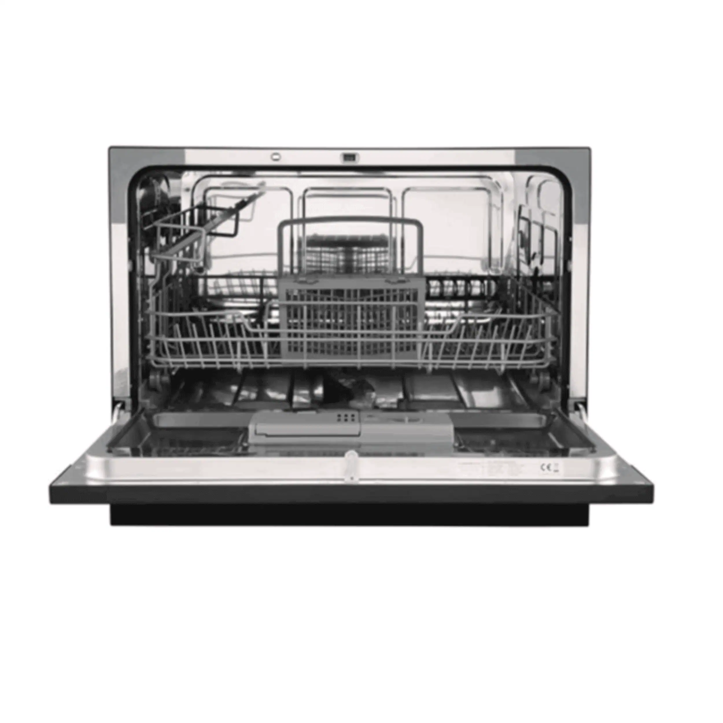 Equipped with a digital screen display, self-clean cycle, and auto door open drying system, the DW215BC ensures hygienic results and faster drying after every wash. Its smart indicators for salt and rinse aid, along with an extra dry function, make daily operation easy and reliable. Finished in an elegant black color, this compact dishwasher combines performance, convenience, and modern design.