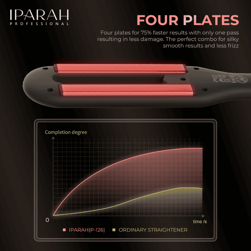 The IPARAH P-126 Professional Ceramic Hair Straightener is designed for women who want smooth, shiny, salon-quality hair from the comfort of home. Featuring dual wide ceramic-coated plates, this straightener delivers even heat distribution for fast styling and reduced hair damage. With multi-temperature settings (100–240V, 50–60Hz) and an LED temperature display, it adapts to all hair types — from fine to thick.