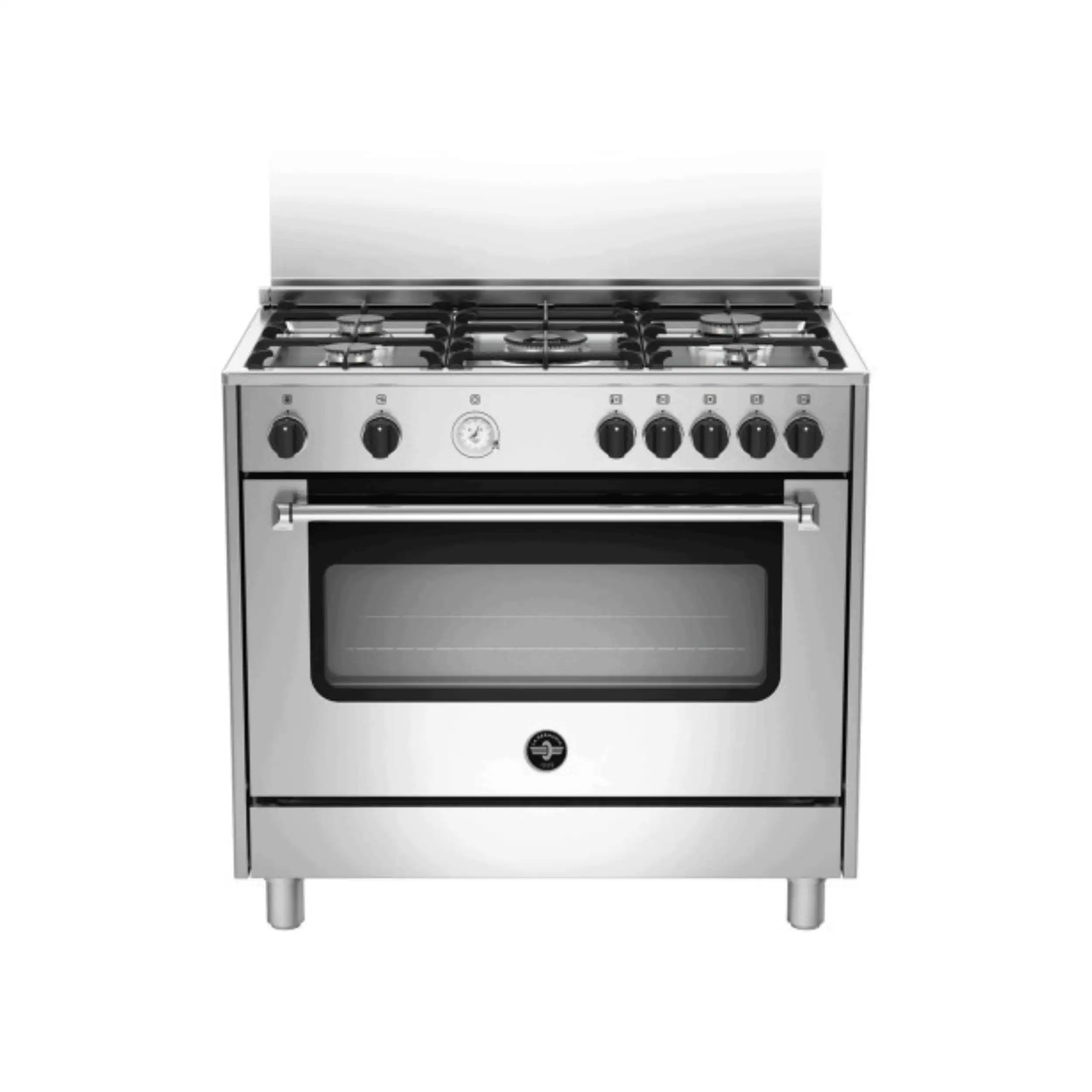 The La Germania AMS95C81CX from the Americana Series is a premium 90 cm single-oven gas cooker designed for serious performance and long-lasting reliability. Built with a stamped stainless-steel worktop and 5 high-efficiency gas burners, it offers precise control for all cooking styles—from slow simmering to rapid boiling.