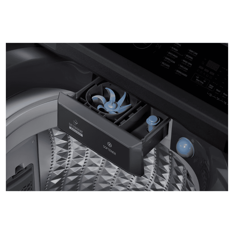 The advanced AI Wash system automatically adjusts water levels, detergent, and cycle settings for optimized cleaning. Connect your washer to the SmartThings App for remote monitoring, Smart Control, Smart Check diagnostics, and customized washing cycles.