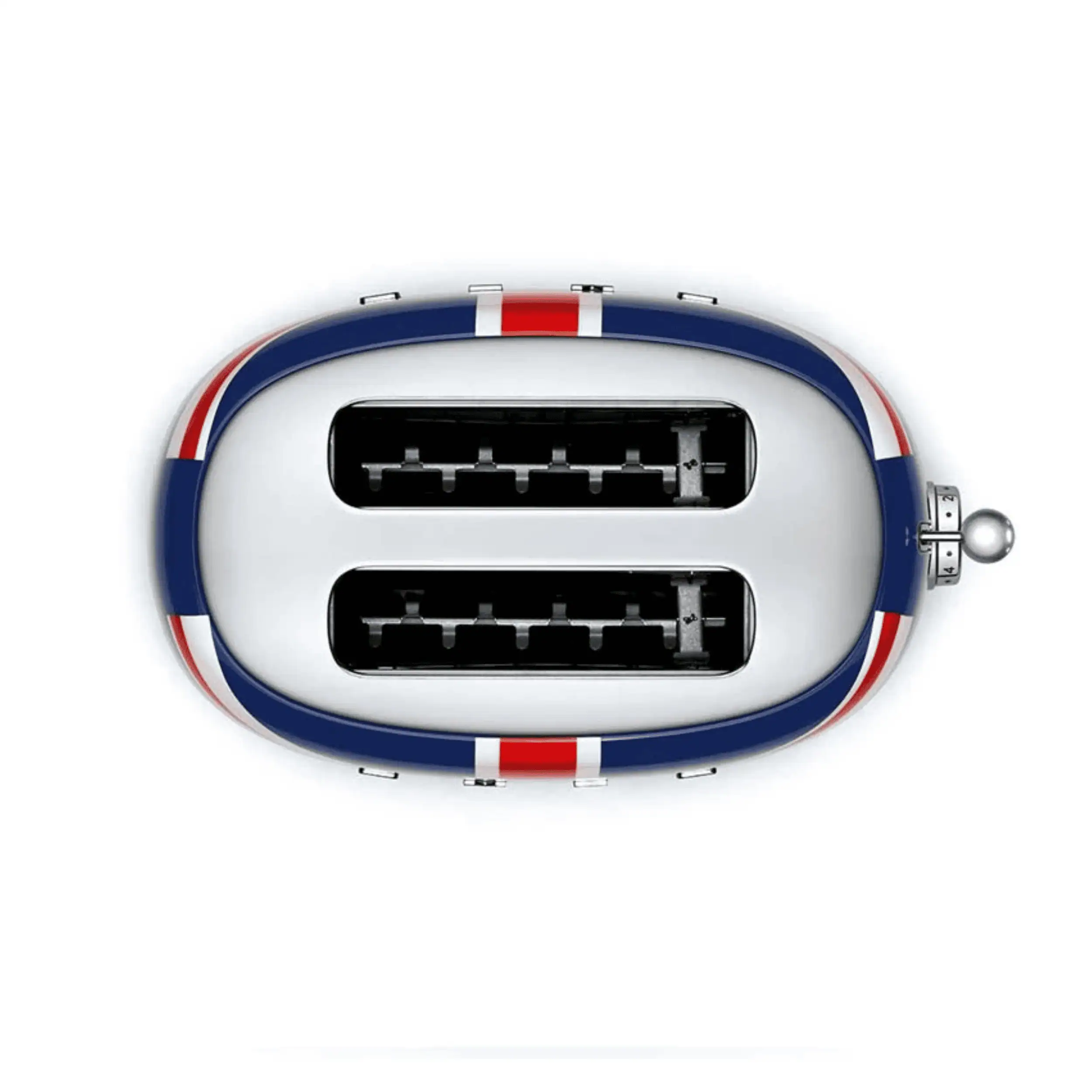 Bring British style and premium performance to your kitchen with the Smeg TSF01UJEU Union Jack 2-Slice Toaster. Designed in Smeg’s iconic 50’s Style aesthetic, this decorated special edition features the vibrant Union Jack motif on a glossy stainless-steel body, making it a standout piece for any countertop.